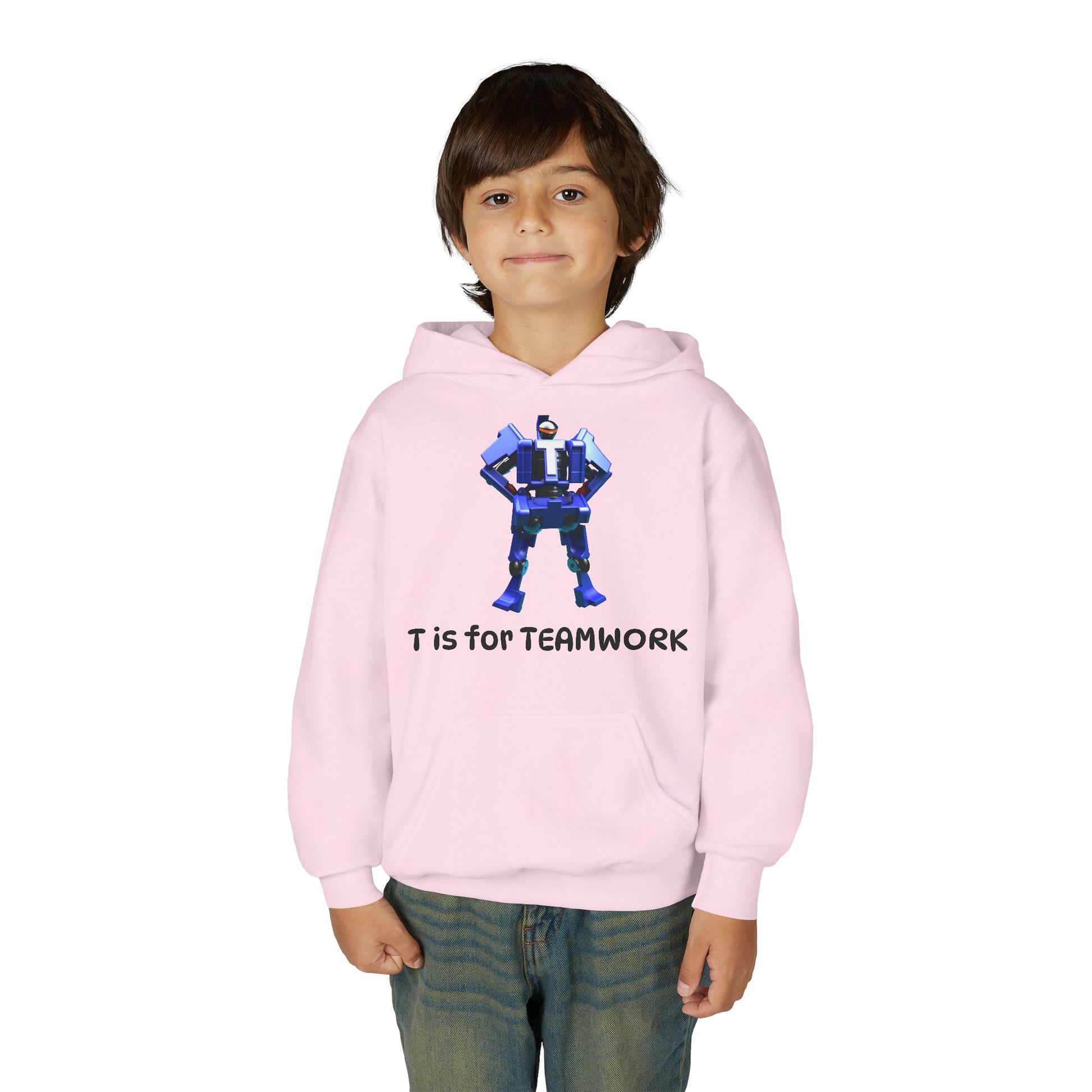 Introducing Skills Tutelage Robot Hoodie Collection. The perfect addition to every adult and young trendsetter's wardrobe: a Heavy Blend Hooded Sweatshirt that combines comfort and style effortlessly. This cozy hoodie is perfect for chilly days at school or weekend adventures, creating a feeling of warmth and camaraderie. Its playful design featuring 'T is for TEAMWORK' adds a fun and inspiring vibe, making it ideal for those